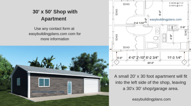 1). A 30’x 30′ three bay shop with attached small 20’x 30′ two bedroom apartment.