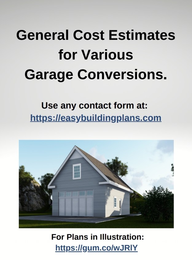 The general estimates provided are just possible low range costs for a 20×24 foot garage conversions for the following types of projects.