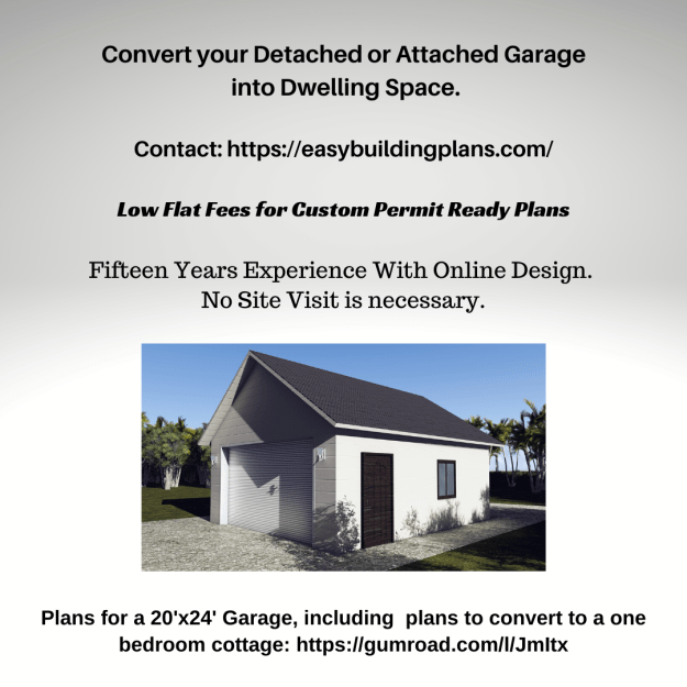 Please contact us for information about the low flat fees for design consulting and plans for converting a detached or attached garage into dwelling space, using the contact form below.